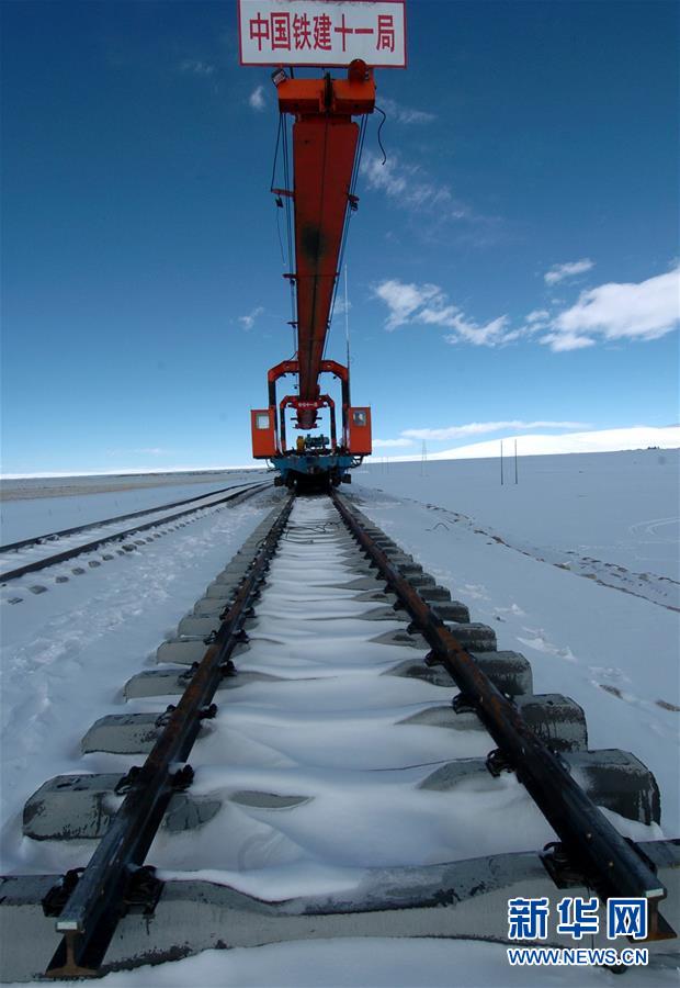 青藏铁路在铺轨建设中(2004年11月19日摄)。新华社记者觉果摄