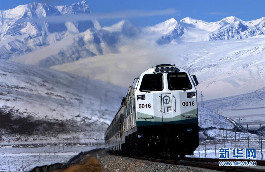 列车行驶在雪域高原的青藏铁路上(2006年10月25日摄)。新华社记者觉果摄