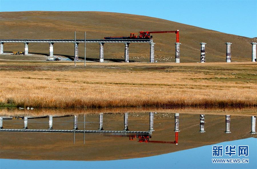 青藏铁路在架桥施工中(2004年资料照片)。新华社记者觉果摄