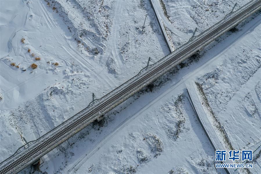 这是12月16日无人机拍摄的敦煌铁路大柴旦站附近的一处铁路桥。新华社记者张龙摄