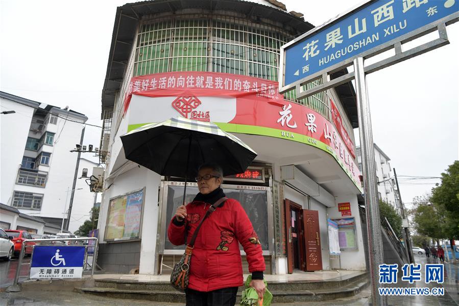 在江西省南昌市新建区花果山社区,市民从“爱心伞”柜取伞后离开(12月19日摄)。新华社记者 彭昭之 摄