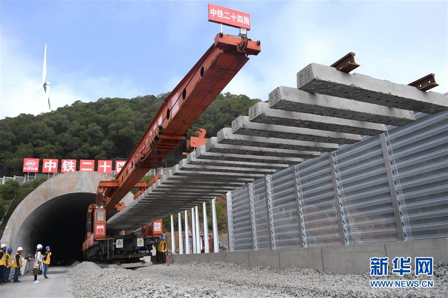 12月22日,中铁二十四局工作人员在平潭海峡公铁大桥铺轨施工现场进行铺轨作业。当日,总长为16.34公里的福平铁路平潭海峡公铁大桥铺轨正式启动。平潭海峡公铁大桥是福州至平潭铁路控制性工程,上层设计为时速100公里的六车道高速公路,下层为设计时速200公里的高铁,大桥计划2020年正式通车。新华社记者林善传摄