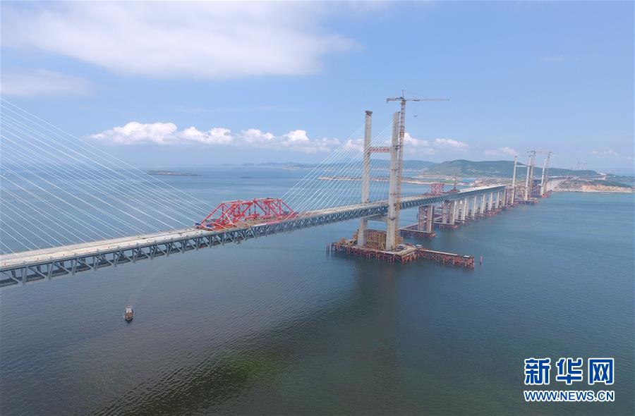 6月5日,福平铁路平潭海峡公铁两用大桥元洪航道桥主桥正式合龙。新华社记者林善传摄