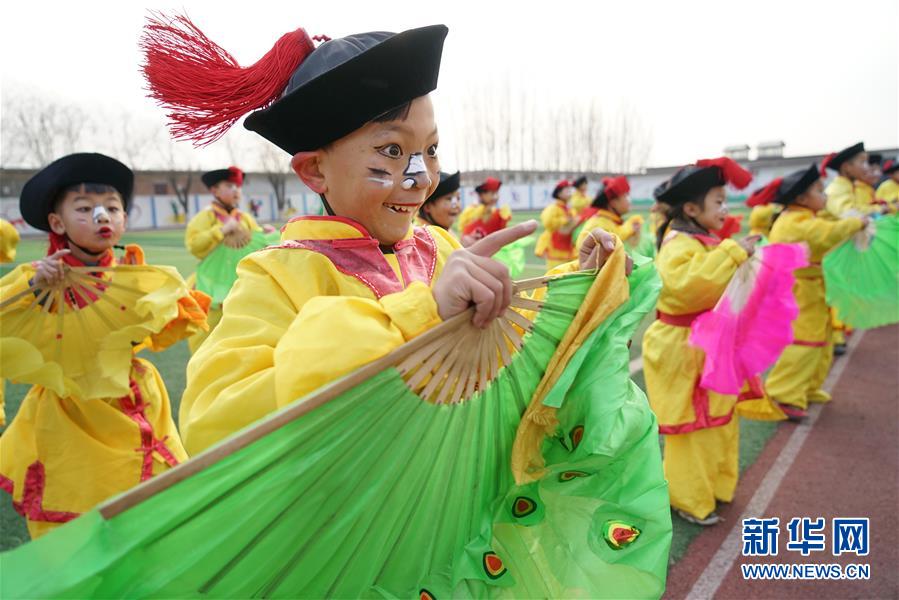 12月19日,河北省滦州市小闫营小学学生在排练地秧歌。 国家级非遗地秧歌是冀东地区广为流传的一种民间艺术。近年来,河北省滦州市响嘡街道小闫营小学将地秧歌引入校园,组建学生兴趣社团,并聘请地秧歌艺人定期为孩子们授课,让孩子们近距离感受家乡传统文化的魅力。 新华社记者 牟宇 摄