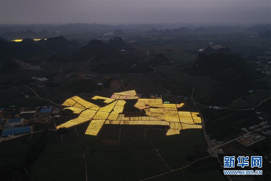 广西隆安县一处装有灯光补给系统的火龙果种植基地在夜晚点亮补给灯(10月15日无人机拍摄)。隆安县多个大中型火龙果种植基地通过引入灯光补给系统,给生长期的火龙果进行补光,促进光合作用,延长挂果期,提高火龙果的产量。 无人机播种、牛舍自动喂料、果蔬大棚水肥一体化灌溉……越来越多的高科技农业技术,给传统农业带来翻天覆地的变化。“干农活儿”突破了人们脑海中“面朝黄土背朝天”的传统印象,也可以变得越来越轻松,甚至充满趣味。 新华社记者 曹祎铭 摄