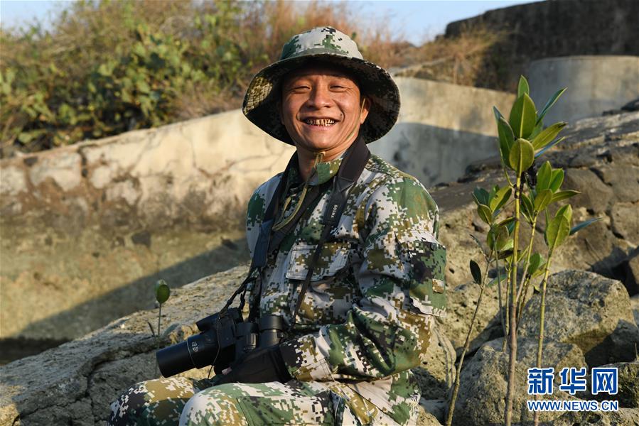 海南儋州新英湾红树林市级自然保护区护林员陈正平(12月9日摄)。陈正平2010年开始在保护区工作,他将工作发展成爱好,广泛参加各种培训和业内交流。他在工作中拍到濒危鸟类白肩雕出现在海南的照片,这刷新了海南省的鸟种记录。