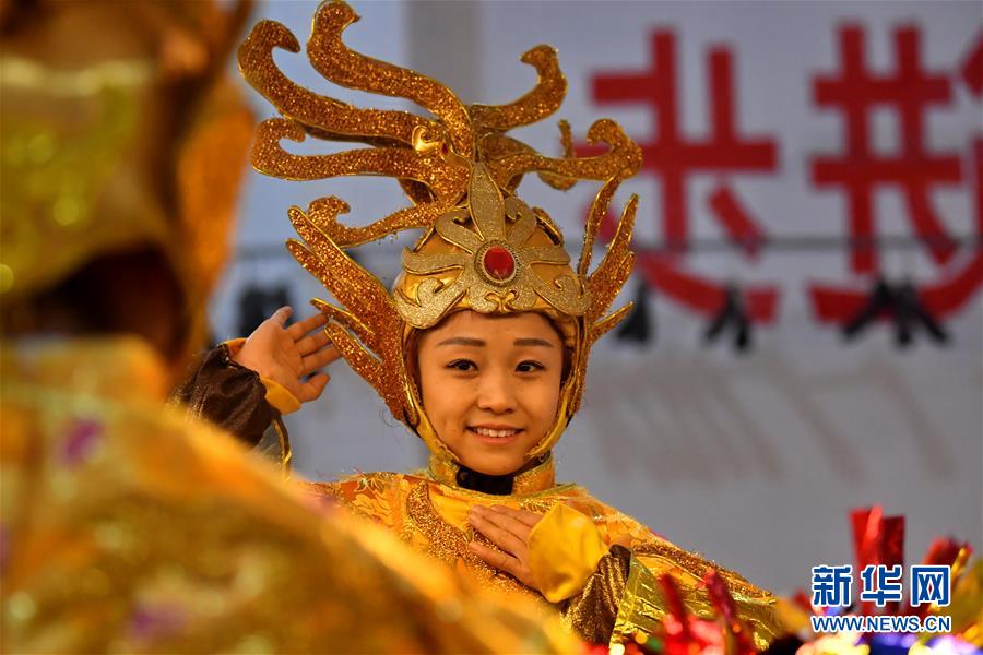 山西省平定县娘子关镇娘子关村村民在排练舞剧《大唐娘子军》前整理头饰(3月6日摄)。娘子关镇的妇女充分发挥自身优势,对路线规划、餐饮服务、住宿等旅游业关键环节进行“精耕细作”,吸引了越来越多的游客,成为脱贫攻坚战中旅游产业发展的主力。2018年年底,娘子关镇的贫困人口全部脱贫。新华社记者曹阳摄