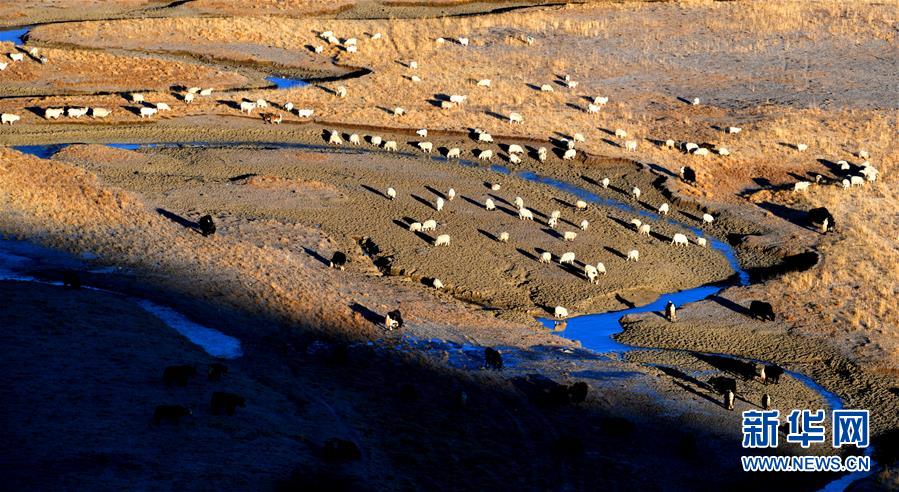 牛羊群在水草丰美的石渠县扎溪卡大草原徜徉(11月2日摄)。新华社记者陈天湖摄