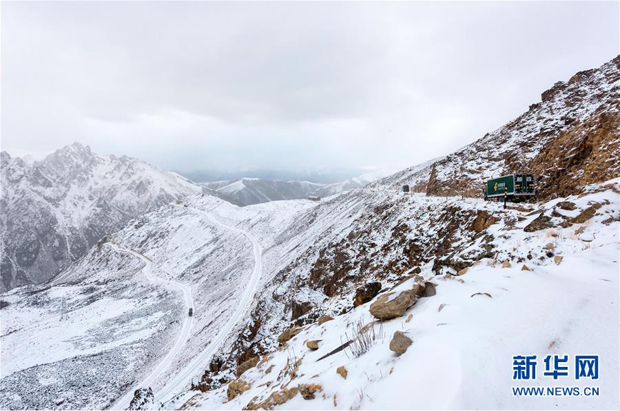 其美多吉与同事驾车行驶在雪线邮路上(资料照片)。其美多吉是中国邮政甘孜县分公司邮运驾驶组的一名邮车司机,往返在甘孜县与德格县之间。这段路程是四川省甘孜州绵延5866公里、平均海拔超过3500米的雪线邮路最危险的一段。新华社发(周兵摄)