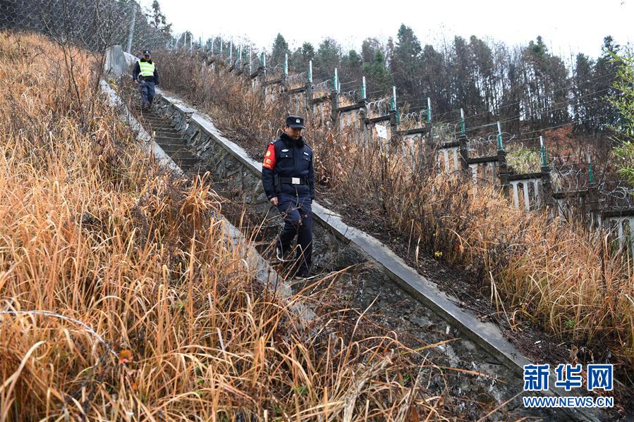 12月18日,常晓龙(前)和辅警在巡线。新华社记者刘军喜摄