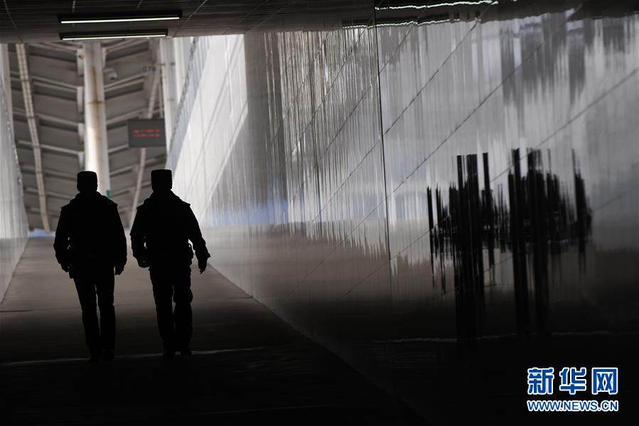 金寨火车站派出所民警邓成成(右)与王晨旭在站内执勤(12月19日摄)。新华社记者张端摄