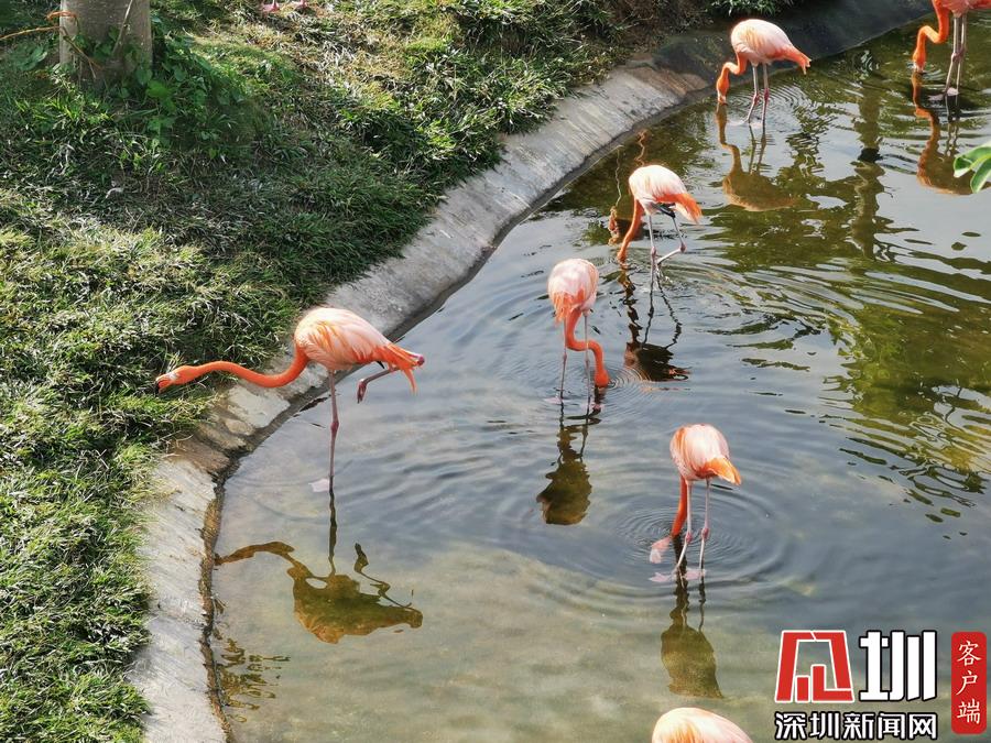 探访深圳国家基因库 火烈鸟湖中悠闲觅食