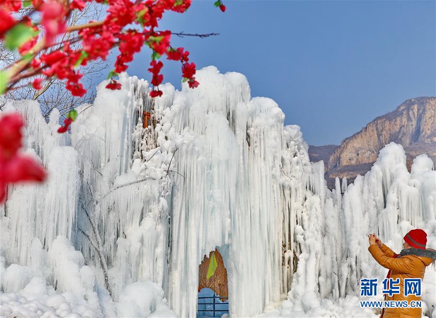 1月9日,游客在云台山景区观赏冰瀑景观。近日,受降温影响,位于河南省焦作市的云台山景区出现冰瀑景观,奇特壮美。新华社记者李嘉南摄