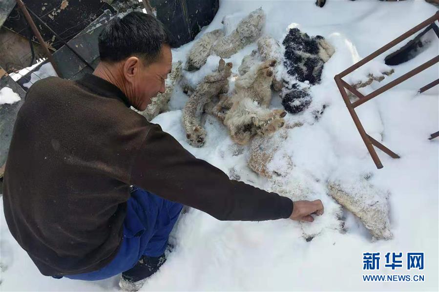乌拉特中旗一位牧民在查看被冻死的羊(12月20日摄)。 新华社记者 李云平 摄