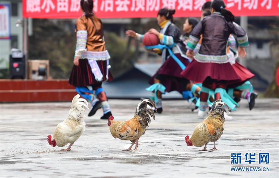 12月25日,苗族妇女参加趣味篮球比赛。 当日,广西融水苗族自治县杆洞乡党鸠村在柳州市妇联支持下,在乌英苗寨举办家庭运动会,通过挑禾把、趣味篮球赛等活动,迎接即将到来的传统苗年。 新华社记者 黄孝邦 摄
