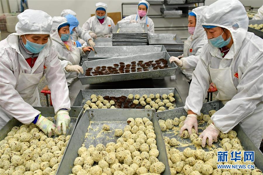 12月25日,闻喜县一家煮饼生产企业的员工在包装煮饼。 新华社记者曹阳摄