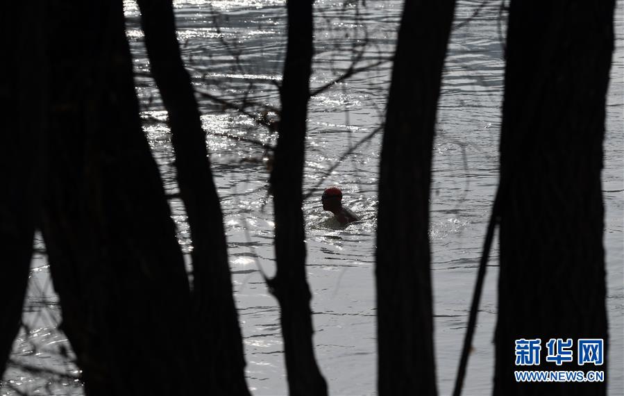 12月20日,83岁的冬泳爱好者周汉英在黄河冬泳。新华社记者陶希夷摄