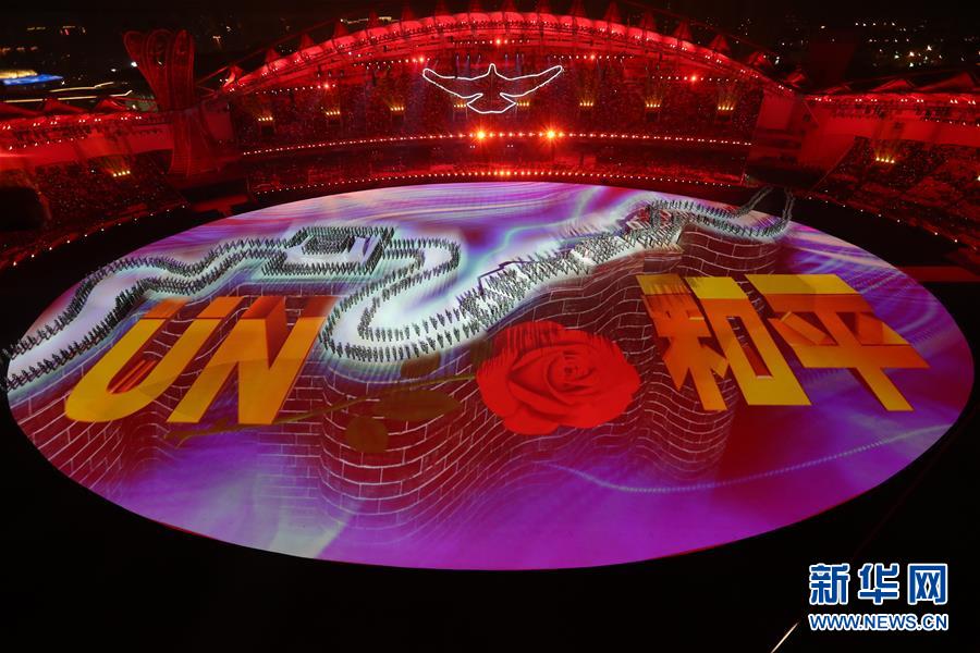 这是10月18日拍摄的第七届世界军人运动会开幕式上的文艺表演。 新华社记者 李尕 摄