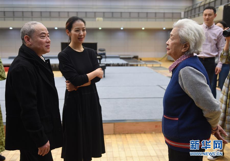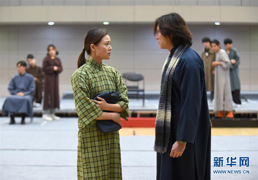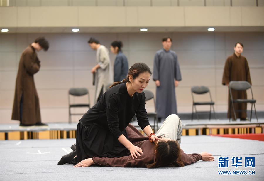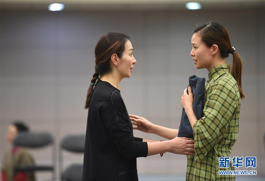 12月26日,在话剧《二月》中饰演陶岚的演员卢芳(前左)在排练。 新华社记者 罗晓光 摄
