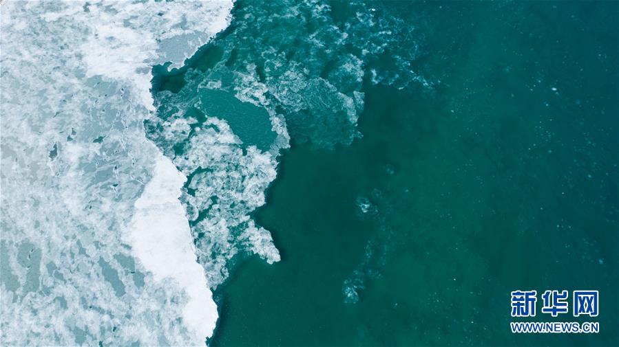 12月27日无人机拍摄的青海湖。 12月中旬,青海湖开始出现结冰现象。 新华社记者 吴刚 摄