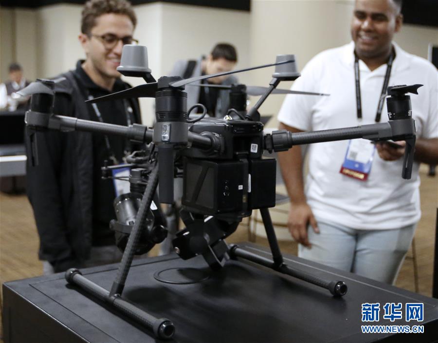 9月24日,在美国洛杉矶,人们在2019年大疆创新AirWorks大会上参观一款大疆无人机。2019年,蓬勃发展的无人机经济正在形成一套生态系统,其中中国企业大疆创新的表现最为抢眼。 新华社记者 李颖 摄