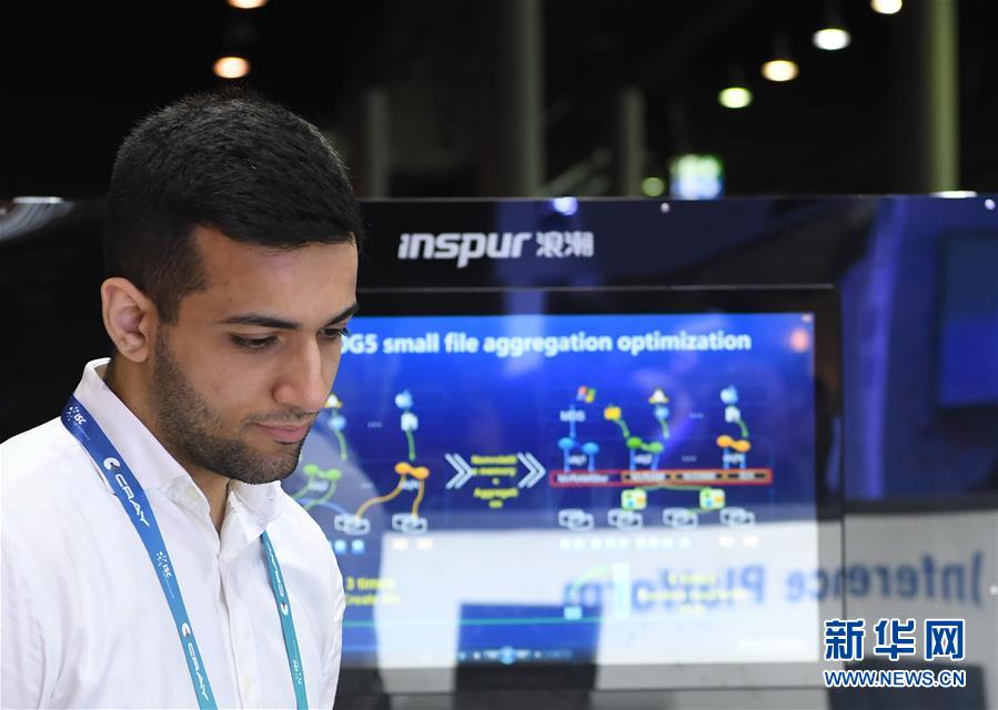 6月17日,在德国法兰克福,一名男子在第34届国际超级计算大会浪潮集团展台参观。2019年,中国在超算领域的创新能力备受国际业界关注。 新华社记者 逯阳 摄