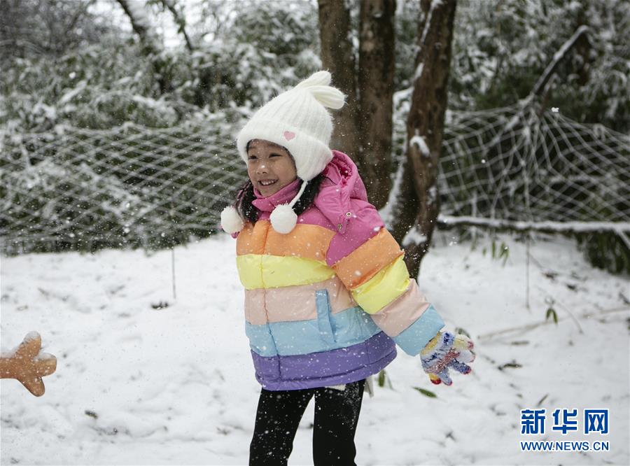 12月28日,小朋友在峨眉山风景名胜区玩雪。新华社记者李梦馨摄