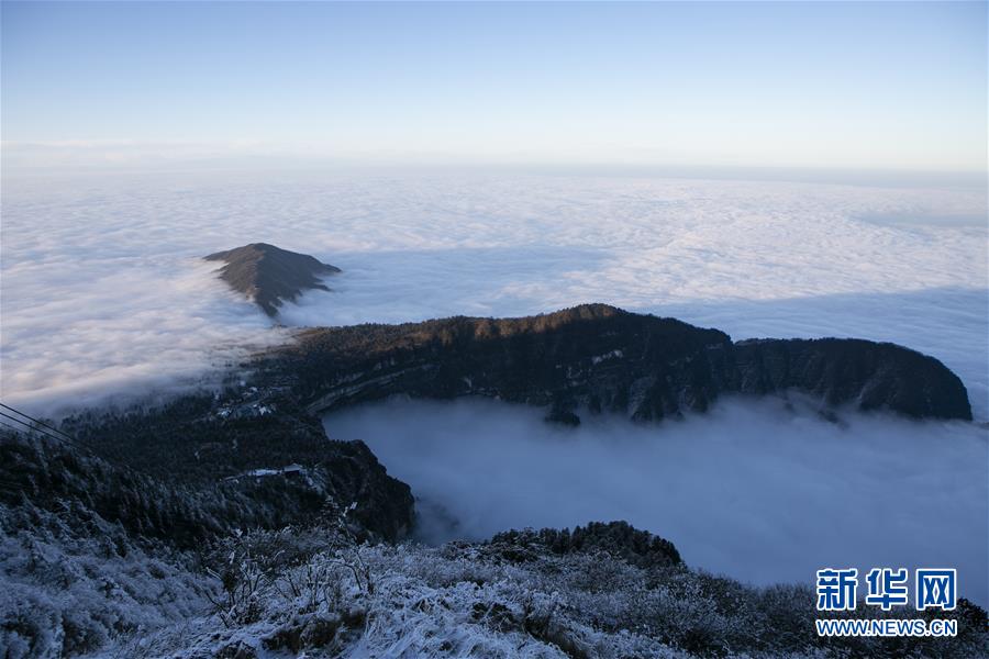 这是12月28日在四川省峨眉山金顶拍摄的景色。时值冬日,峨眉山银装素裹、宛如仙境。新华社记者李梦馨摄