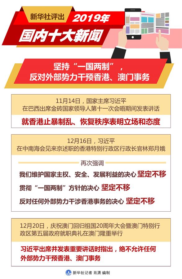 图表:新华社评出2019年国内十大新闻 新华社记者 肖潇 编制