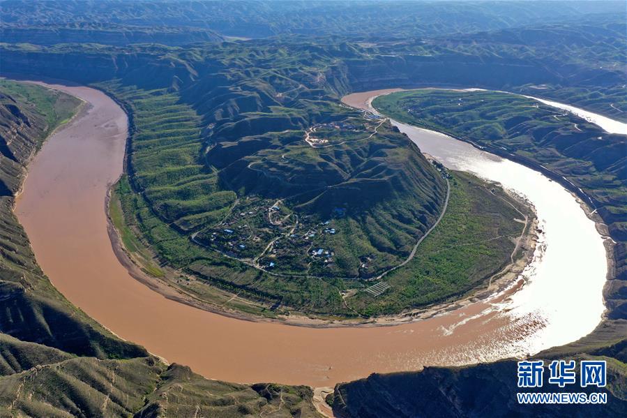 这是8月28日拍摄的山西省永和县阁底乡境内黄河乾坤湾(无人机照片)。 新华社记者 曹阳 摄