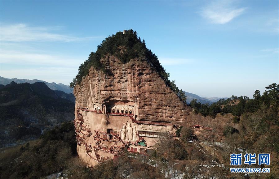 12月26日无人机拍摄的麦积山石窟。新华社记者马宁摄