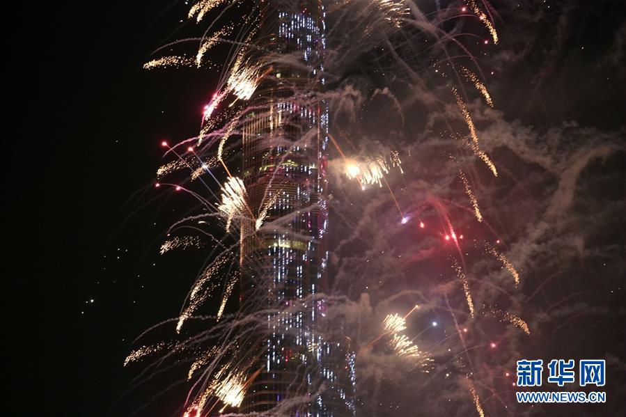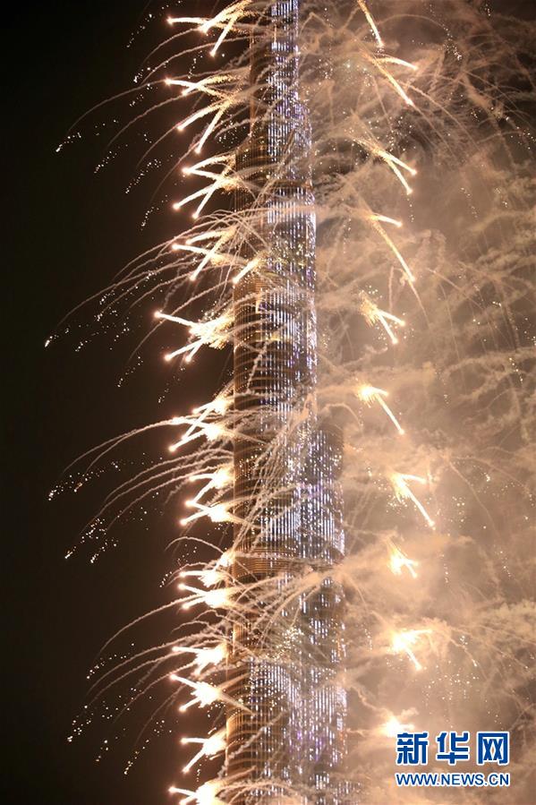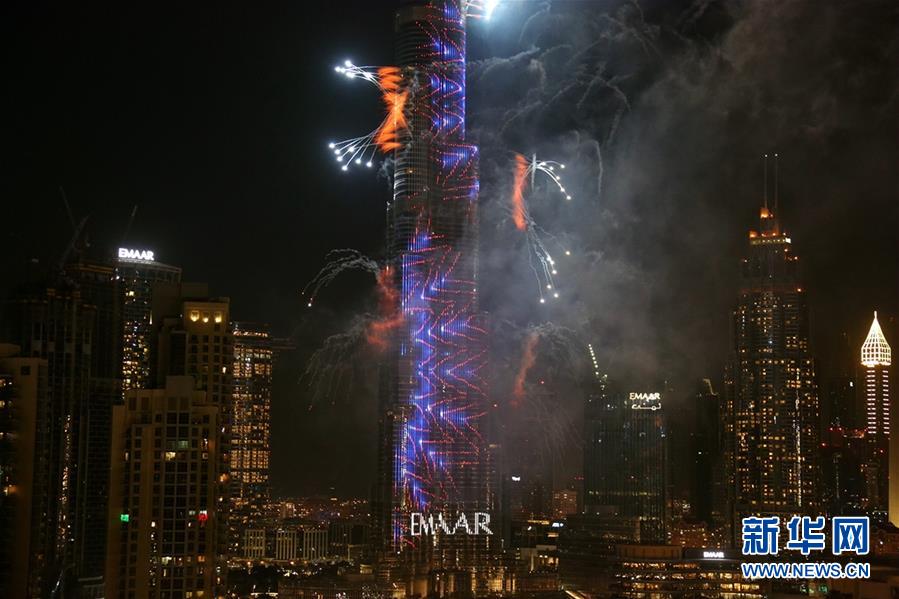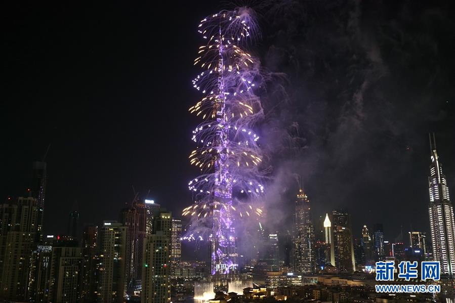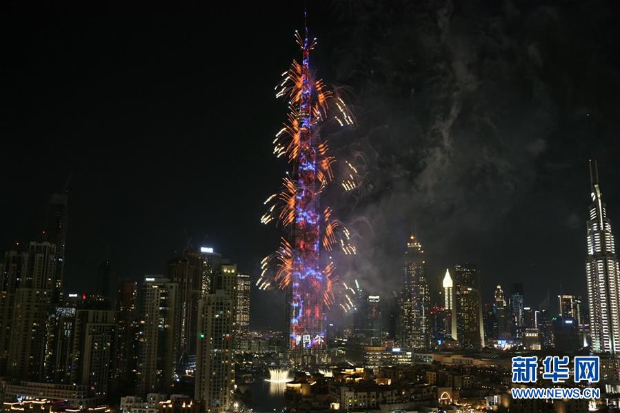 这是2020年1月1日拍摄的阿联酋迪拜哈利法塔跨年烟火表演。新华社记者苏小坡摄