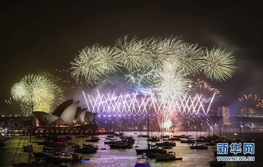 当地时间2020年1月1日,澳大利亚悉尼歌剧院和海港大桥畔燃放烟花,庆祝2020年的到来。新华社记者白雪飞摄