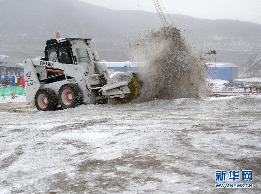 图为一台扫雪车在国家跳台滑雪中心工作(摄于12月10日)。新华社记者毕明明摄
