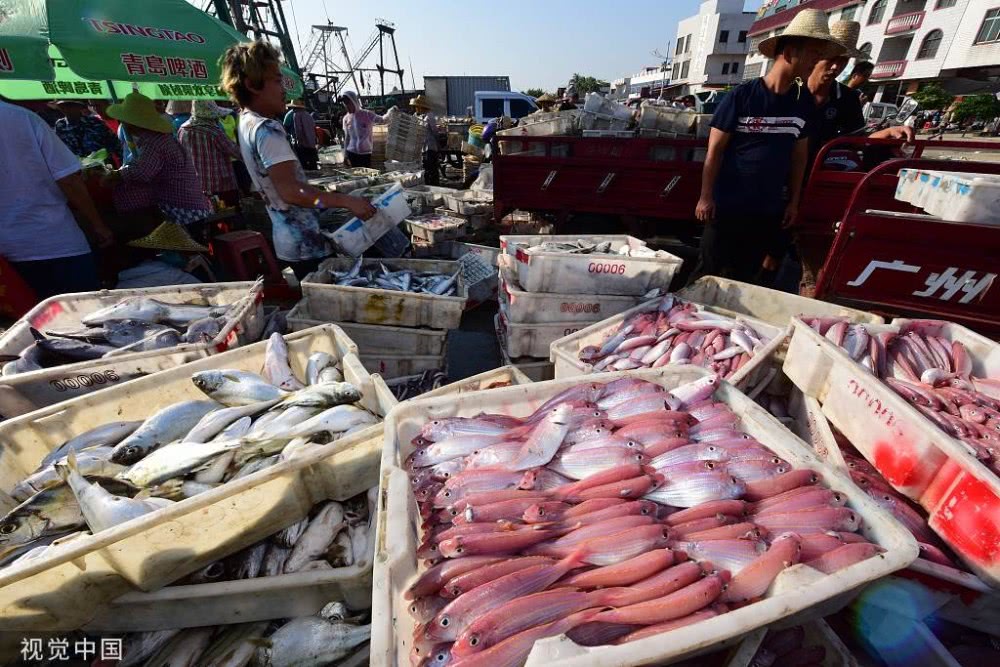 金秋时节,渔民抓住南海风和日丽秋高气爽的好天气加紧进行海洋捕捞。