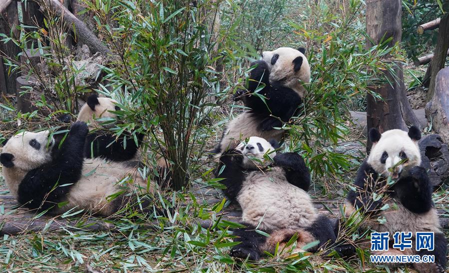 这是1月1日在成都大熊猫繁育研究基地拍摄的大熊猫。 新华社发(谢怡 摄)