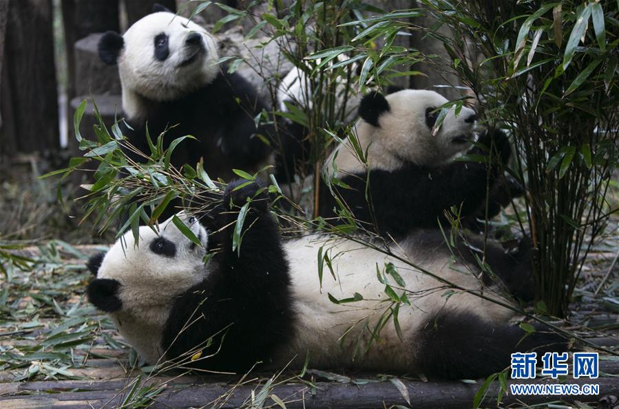 这是1月1日在成都大熊猫繁育研究基地拍摄的大熊猫。 新华社记者 李梦馨 摄