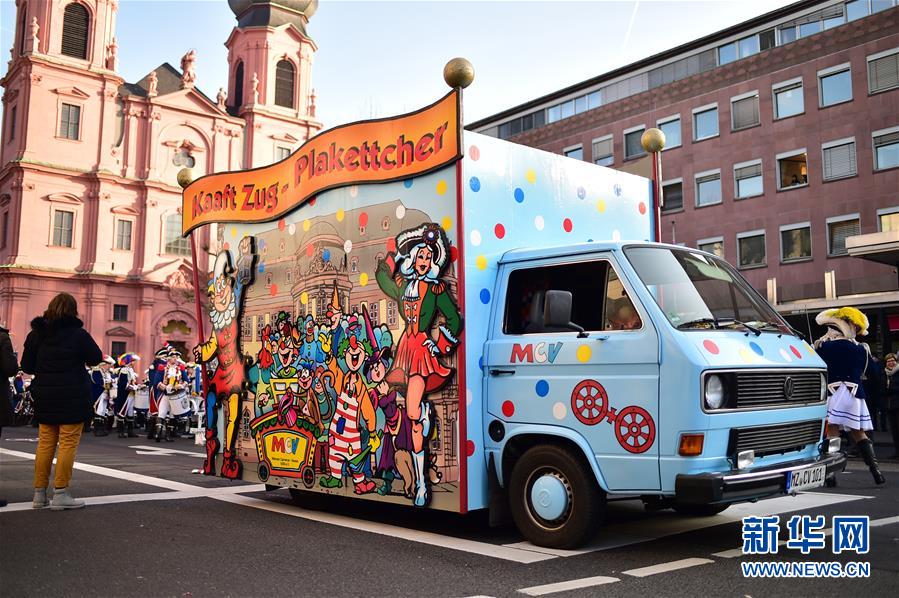 这是1月1日在德国美因茨新年游行活动中拍摄的一辆彩车。新华社记者逯阳摄