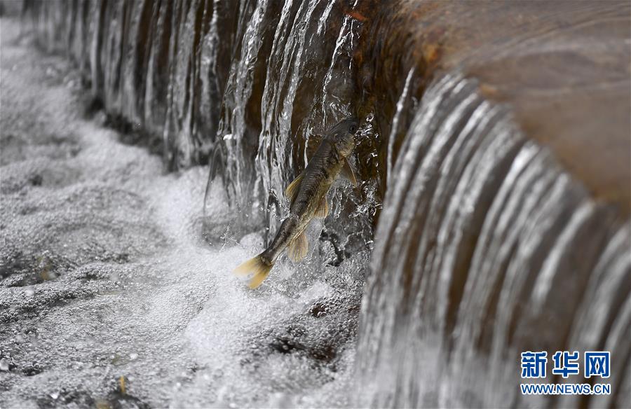 7月6日,在青海省刚察县沙柳河里,一条湟鱼在洄游。新华社记者张宏祥摄