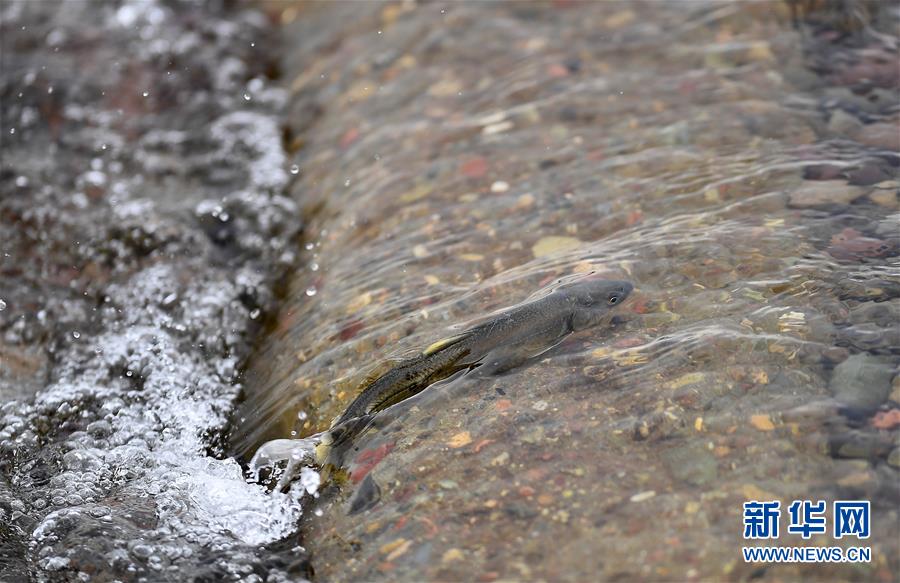 7月6日,在青海省刚察县沙柳河里,一条湟鱼在洄游。盛夏时节,在我国最大的内陆咸水湖青海湖中,湟鱼开始成群结队沿着入湖河流逆流而上,到上游淡水河产卵,形成“半河清水半河鱼”的奇观。新华社记者张宏祥摄