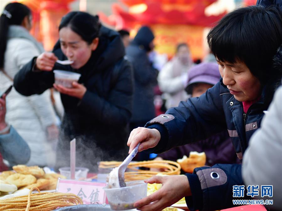 1月2日,市民在青海省海东市平安区“共品腊八粥”活动现场盛腊八粥。 当日是农历腊月初八,中国传统腊八节。 新华社记者 张龙 摄
