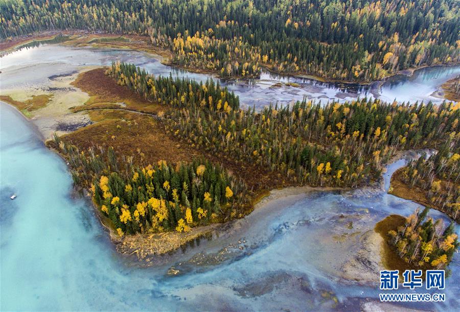 9月24日无人机拍摄的喀纳斯景区风光。新华社记者王菲摄