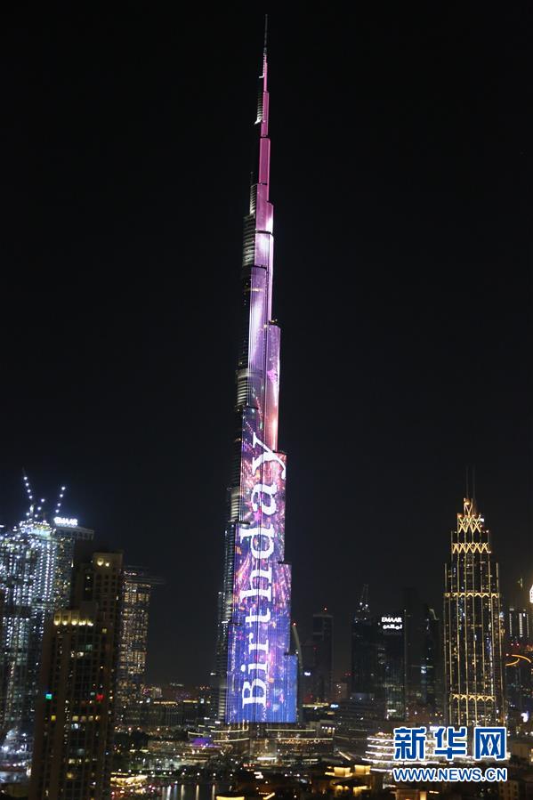 这是1月4日在阿联酋迪拜拍摄的世界第一高楼哈利法塔庆祝开放10周年灯光秀。新华社记者苏小坡摄