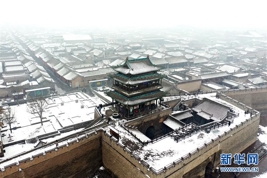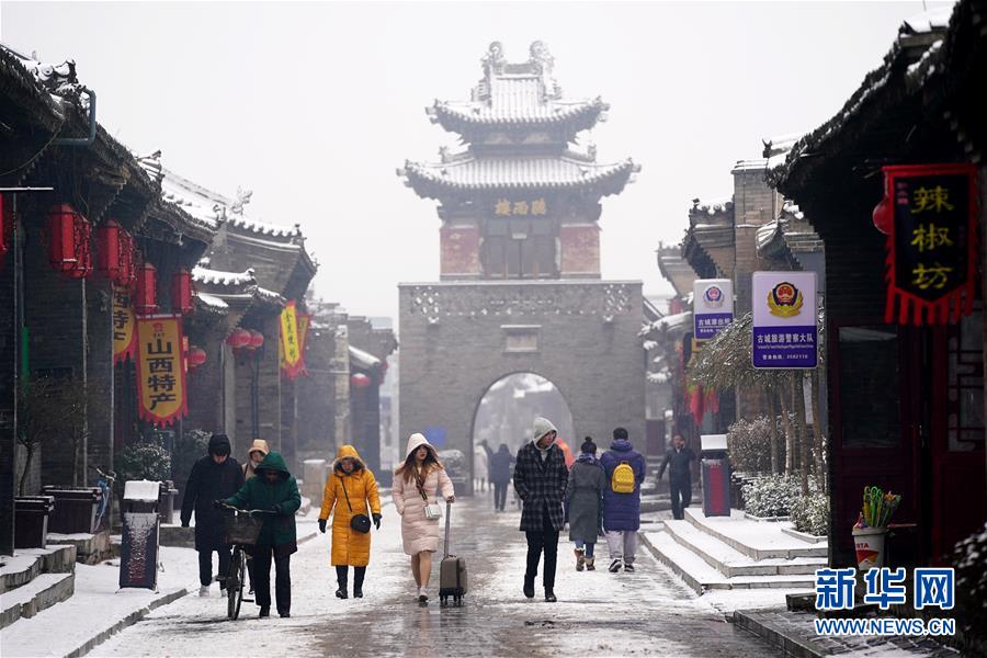 当日,山西省平遥县迎来降雪,雪中的平遥古城银装素裹,美景如画。平遥古城是目前中国保存最完整的古代县级城池之一,1997年被列入世界文化遗产名录。