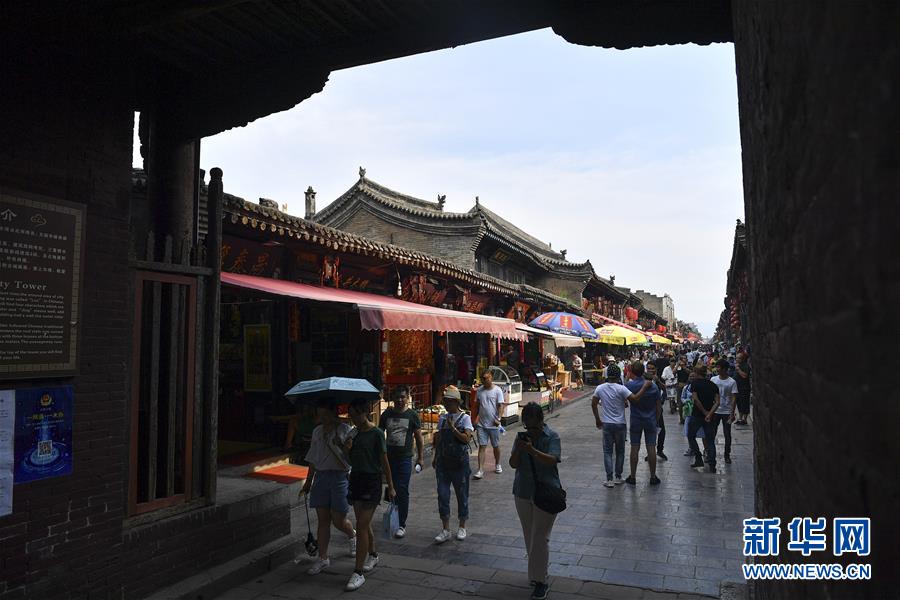 7月20日,游人在平遥古城区参观。