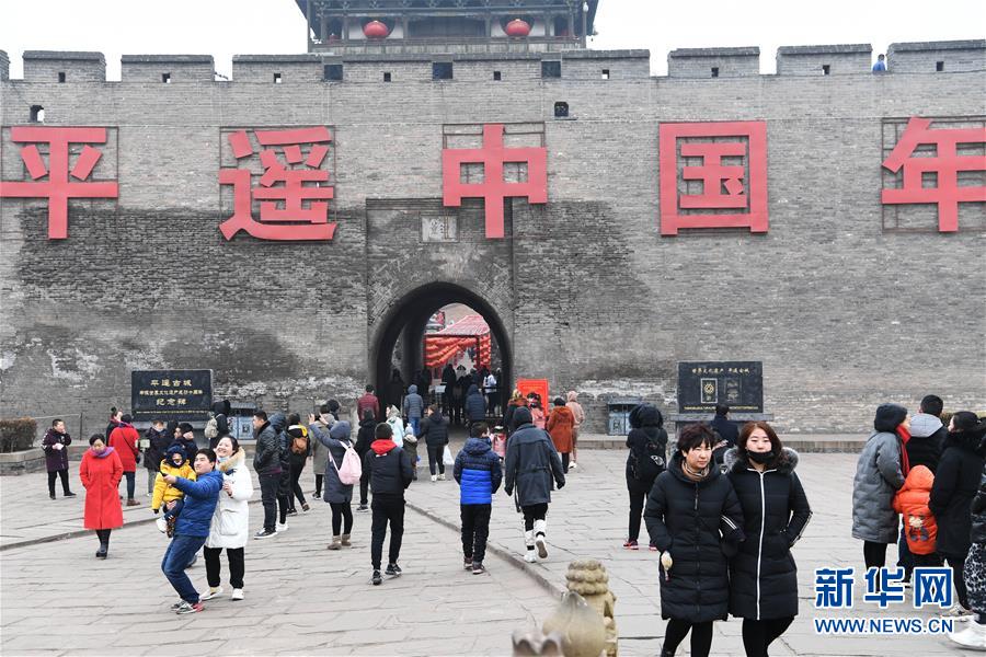 (2019年)2月13日,游客在平遥古城参观。新华社记者杨晨光摄