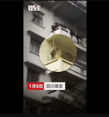 险!老太用绳子绑孙子从5楼吊至3楼救猫 网友:孙子是买猫送的?