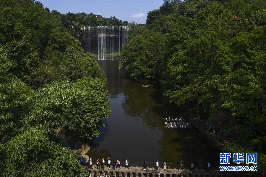 游客在重庆万州大瀑布群旅游区内游览(2019年9月5日摄)。新华社记者王全超摄