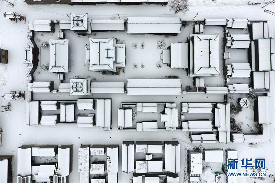 这是1月7日拍摄的太原古县城(无人机照片)。当日,山西省太原市迎来降雪,雪后的太原古县城银装素裹,美景如画。太原古县城是晋阳古城遗址的一部分,因其整体格局如同振翅高翔的凤凰,也被称为“凤凰城”。新华社记者曹阳摄