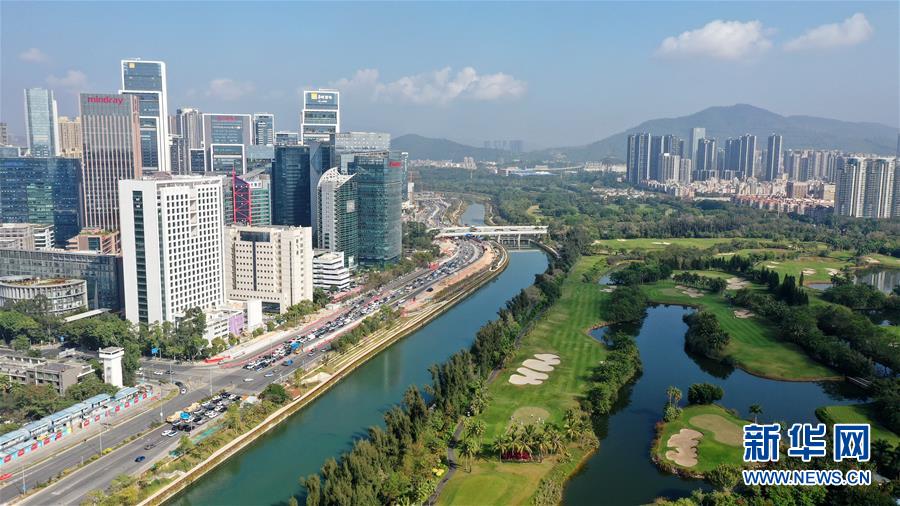 这是1月7日拍摄的深圳南山区大沙河两岸景观(无人机照片)。 新华社记者 梁旭 摄